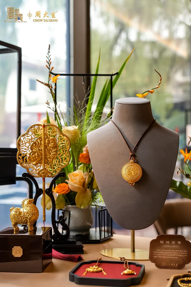 为履行这一宏伟愿景,周大生×国家宝藏品牌持续深化与顶级文博IP《国家宝藏》的合作,持续将中国不朽文明和千年文化精粹藏入万家。其产品融合古法制金与非遗等中国传世技艺,萃取国宝文化精粹,在国家宝藏IP的加持下尽显中国美学典范。从国宝文化精粹出发,融合现代美学设计,周大生×国家宝藏品牌打造出的国宝文化典藏金品具备可点睛、可品鉴、可家藏、可传世的功能价值,同时承载着中国文化自信与认同,蕴含“国之盛世、家之兴旺、爱之圆满”等精神与情感内涵,为消费者带来独特的文化珠宝体验。
